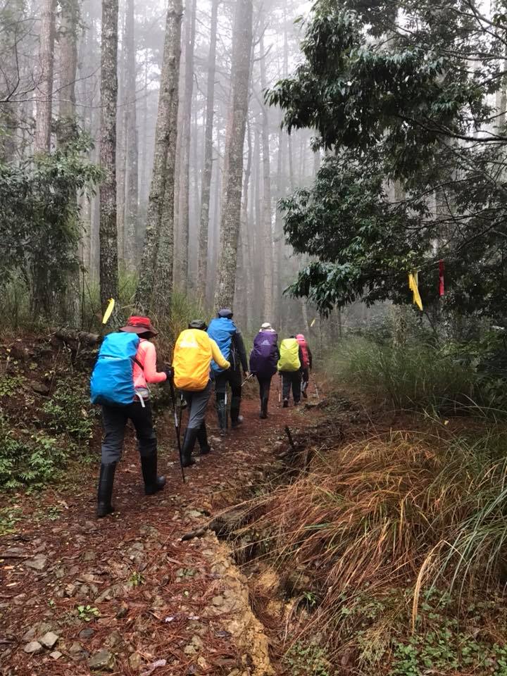 平岩山縱走多加屯山,踩在柔軟的松針地毯,路面寬敞好走,林相優美。眺望大霸尖山、南湖群峰、中央尖山、聖稜線,沿途景色優美,令人心曠神怡。
